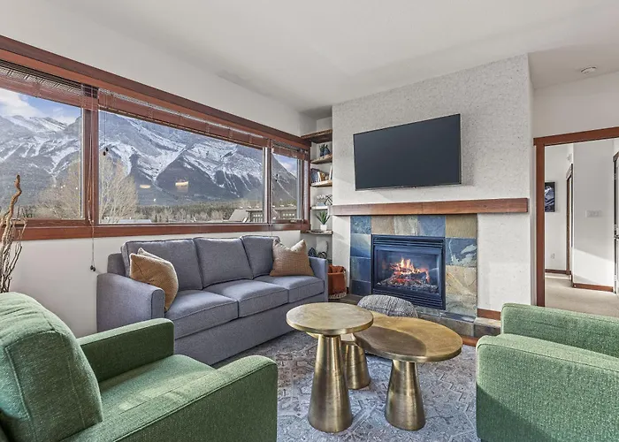 The spacious 84 m^2 Skyline Suite Downtown Canmore Stay is located 2.5 km from Canmore Nordic Centre Provincial Park and offers Wi-Fi for either business or leisure. The 2-bedroom apartment is 5 minutes by car from Cougar Creek and right off Grotto Canyon.